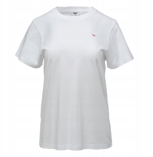Koszulka ma regularny krój oraz krótkie rękawy, co zapewnia swobodę ruchów i wygodę noszenia. Okrągły dekolt dodaje jej delikatności, a biały kolor sprawia, że łatwo ją zestawić z innymi elementami odzieży, zarówno sportowej, jak i casualowej.