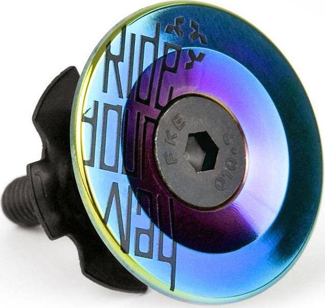 Kapsel przeznaczony do sterów typu ahead wykonany z anodowanego aluminium w kolorze petrol z naniesionym logiem Ride Your Way.