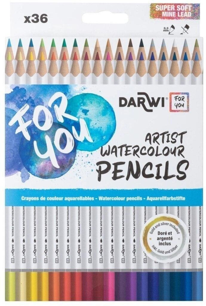 Wysokiej jakości, mocno napigmentowane kredki akwarelowe marki Darwi.