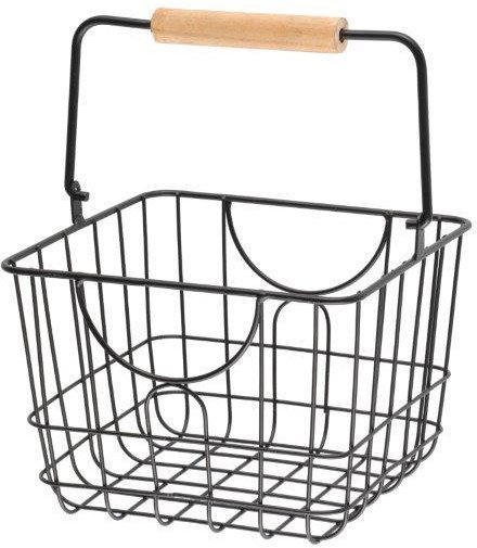 Kosz ma wymiary 18 x 18 x 13 cm, co czyni go kompaktowym i łatwym do umiejscowienia w różnych przestrzeniach. Jego prosty, ale elegancki wygląd sprawia, że może być używany jako samodzielny element dekoracyjny lub jako część większej kompozycji. Czarne wykończenie nadaje mu nowoczesnego charakteru, który z pewnością przyciągnie uwagę.