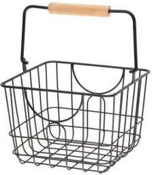 Decorative metal basket with handle, black, 18 x 18 x 13 cm