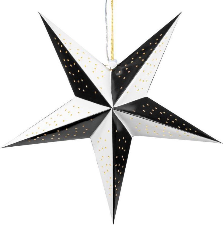 Papierowa dekoracyjna Gwiazdka wykonana z wysokiej jakości papieru o ciekawym wzorze rozświetli nie tylko Twoje okna, ale także cały dom. Można go również zawiesić na ścianie lub dowolnie w przestrzeni. Upiększ swój dom tą tradycyjną dekoracją w nowoczesnym stylu. Dane techniczne: średnica: 40 cm długość kabla: 0,4 m tylko do użytku w pomieszczeniach ochrona zasilania: IP20 (tylko wewnątrz) Zasilanie: 2 baterie AA (brak w zestawie) kolor: czarno-biały 6-godzinny zegar Zawartość opakowania: 1x Gwiazdkowa papierowa gwiazda