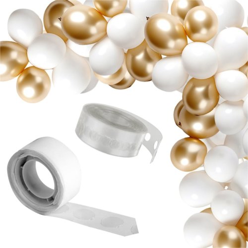W skład zestawu wchodzi także taśma do girland o długości 5 metrów, z około 250 otworami do przymocowania balonów. Dodatkowo, znajdziesz tu dwustronne kropki kleju o średnicy 12 mm, z których jedna rolka zawiera 100 sztuk. Dzięki temu, dekoracja jest nie tylko efektowna, ale również prosta w realizacji.