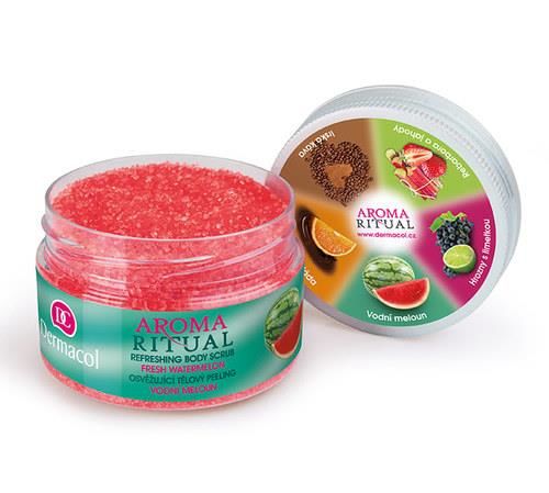 Dermacol Aroma Ritual Refreshing Body Scrub FreshWatermelon to peeling do ciała o aromacie świeżych arbuzów Doskonale usuwa martwe komórki naskórka. Delikatnie oczyszcza skórę i wygładza ją. Skóra staje się jedwabiście gładka i miękka.