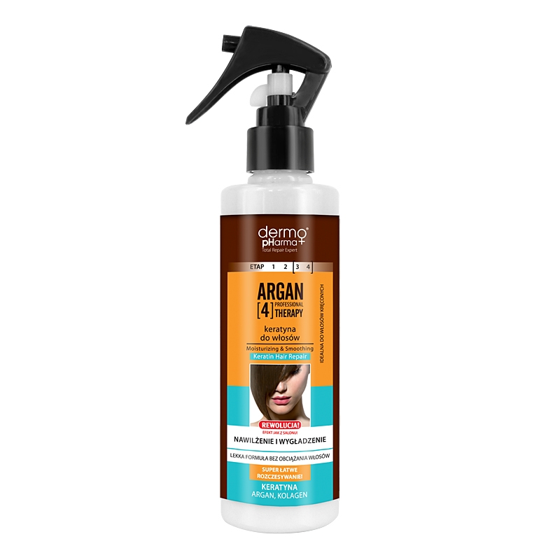 - Mokre włosy – spryskać keratyną z odległości około 20 cm. Rozczesać w celu równomiernego rozprowadzenia produktu na włosach. Przystąpić do suszenia. Nie spłukiwać