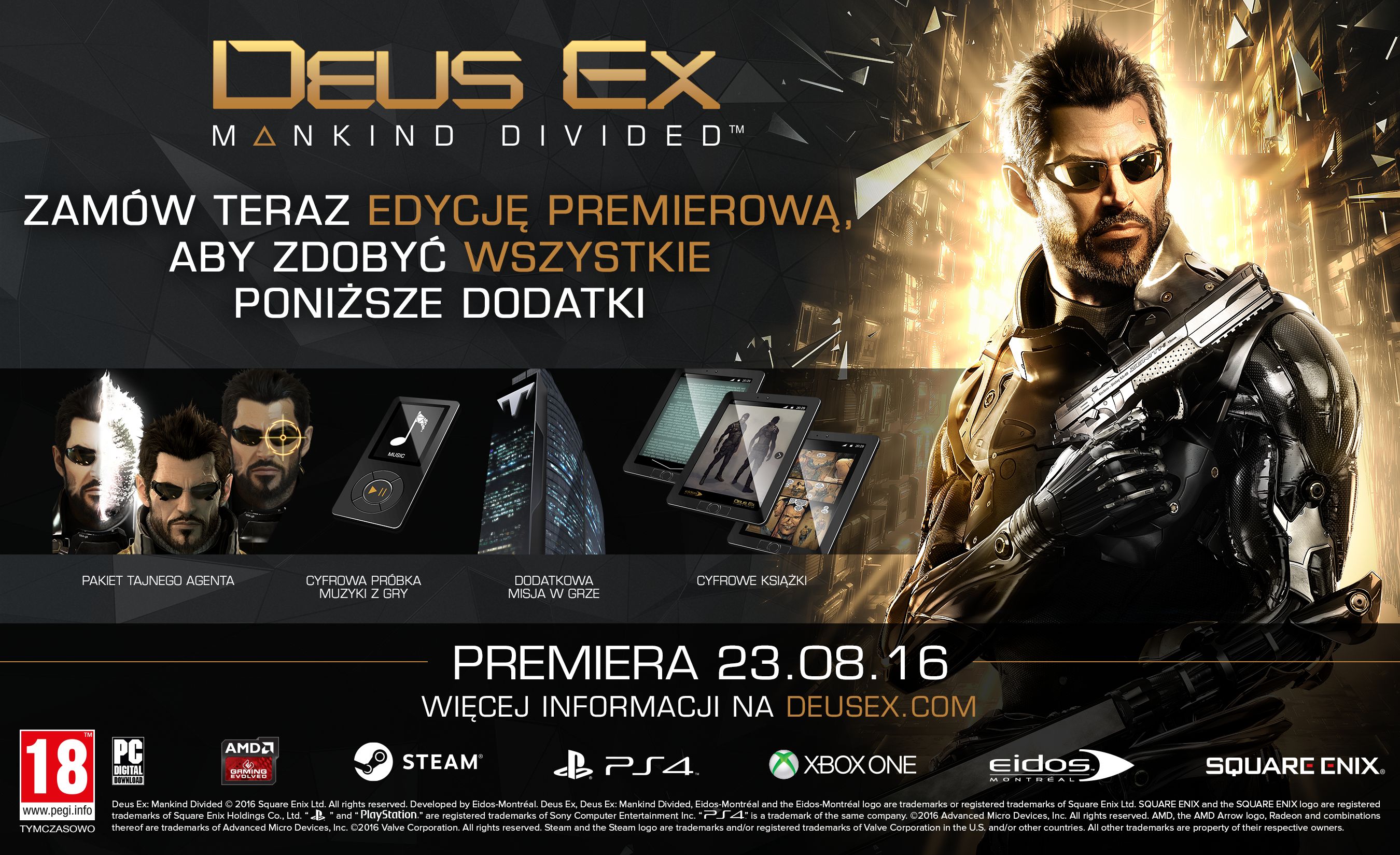 W tej atmosferze politycznego niepokoju i ogólnopanującego chaosu do gry powraca agent Adam Jensen. Wzmocniony o całkowicie nowe ulepszenia Jensen znów trafi na trop prowadzący do ogólnoświatowego spisu.