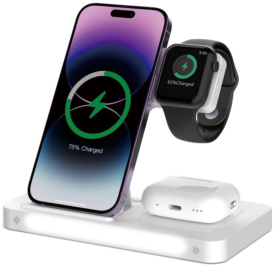 Devia ładowarka indukcyjna 3w1 Smart 15W biała z lampką