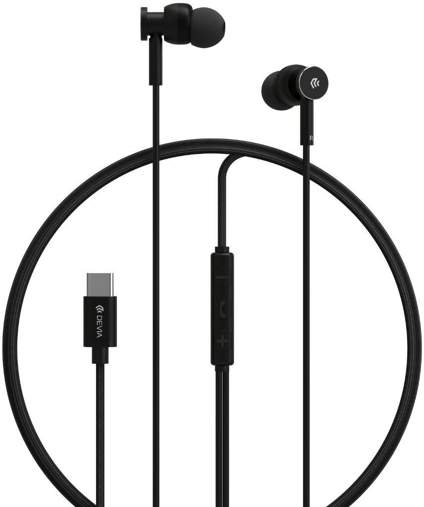 Devia słuchawki przewodowe Smart M1 Digital Metal USB-C dokanałowe czarne