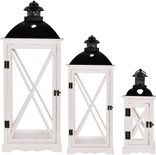 Direct Home and Garden Zestaw 3 szt Latarnia drewniana IPE biała