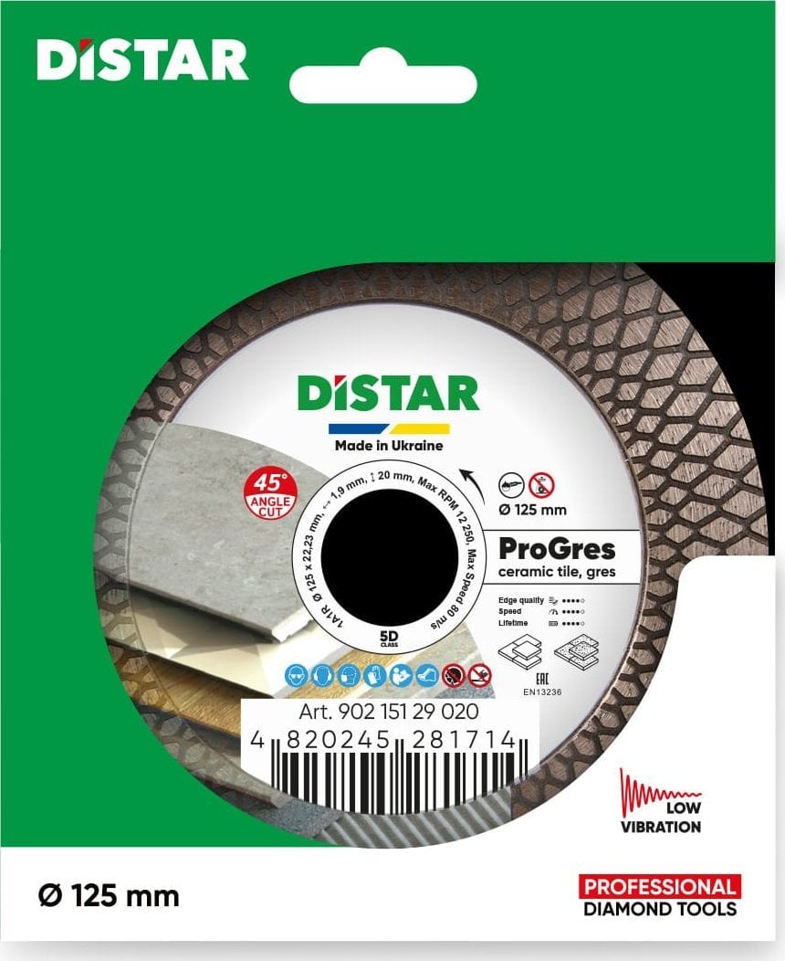 Tarcza diamentowa Distar 1A1R PRO Gres 90215129020 to profesjonalne narzędzie o średnicy 125 mm, zaprojektowane do precyzyjnej obróbki płytek gresowych i ceramicznych. Wyposażona w szeroką, 20-milimetrową warstwę diamentową na powierzchni czołowej, gwarantuje wysoką wydajność i wszechstronność zastosowania.