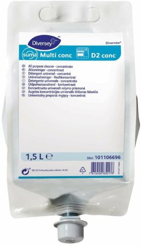 Suma Multi D2 to niezwykły, wszechstronny koncentrat do mycia powierzchni, opracowany przez uznaną markę Diversey. Dzięki pojemności 1,5 litra, ten wysoko skoncentrowany detergent doskonale sprawdza się w czyszczeniu różnorodnych twardych powierzchni, takich jak metale i tworzywa sztuczne, co czyni go idealnym rozwiązaniem zarówno dla gospodarstw domowych, jak i zastosowań profesjonalnych.