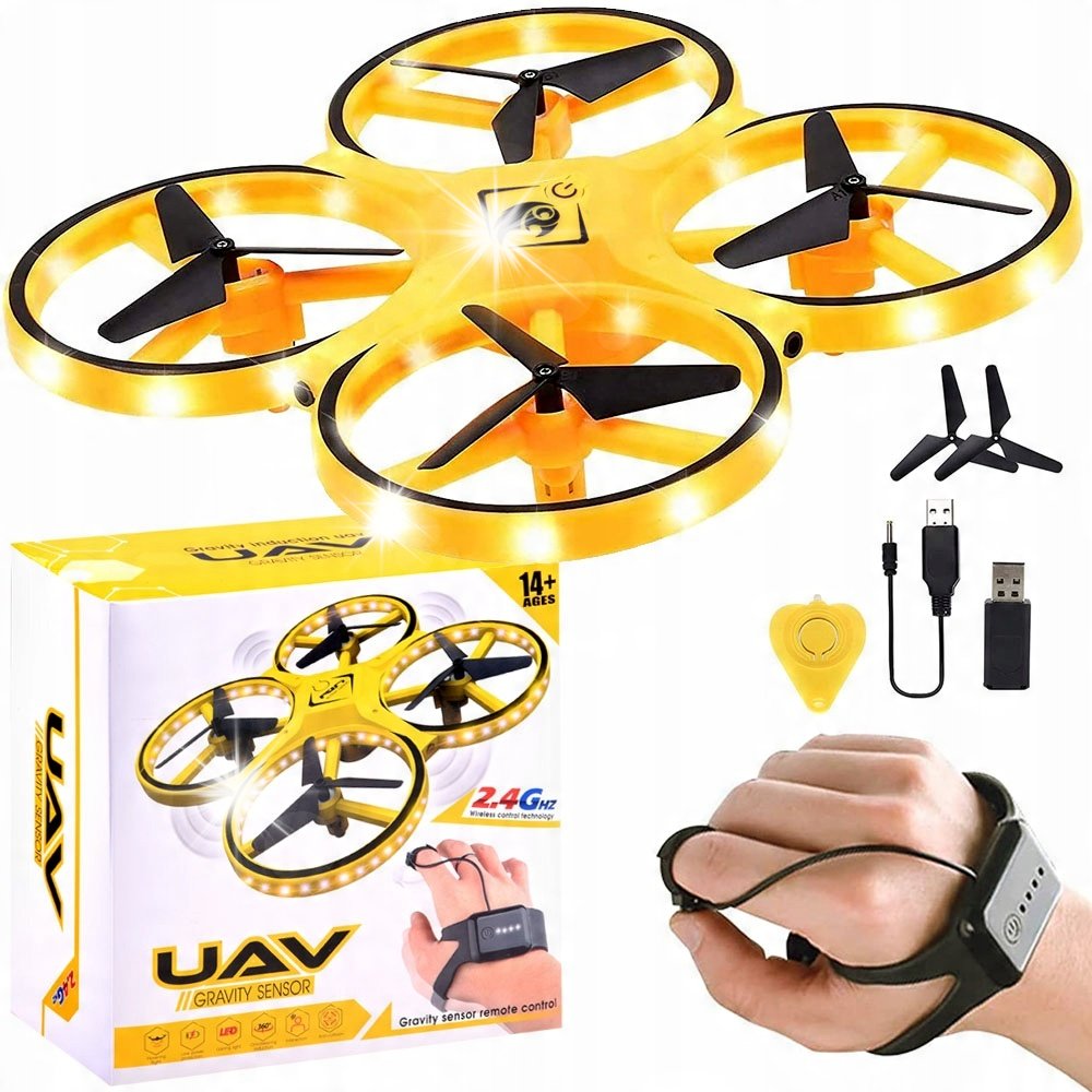 Dron RC0573 jest wyposażony w specjalną opaskę, która umożliwia intuicyjne sterowanie. Użytkownik może zmieniać kierunek lotu poprzez delikatne ruchy ręką, co sprawia, że obsługa drona jest niezwykle prosta i przyjemna. Dron potrafi utrzymywać się w powietrzu oraz obracać wokół własnej osi w zakresie 360 stopni. W przypadku utraty kontroli, wystarczy nacisnąć przycisk na opasce, aby bezpiecznie wylądować.