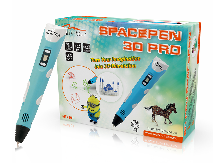 Media-Tech prezentuje ręczną drukarkę SPACEPEN 3D PRO MT4301, który w magiczny sposób zamienia rysowanie w druk 3D. Zamiast płaskich obrazków możemy tworzyć przestrzenne obiekty.