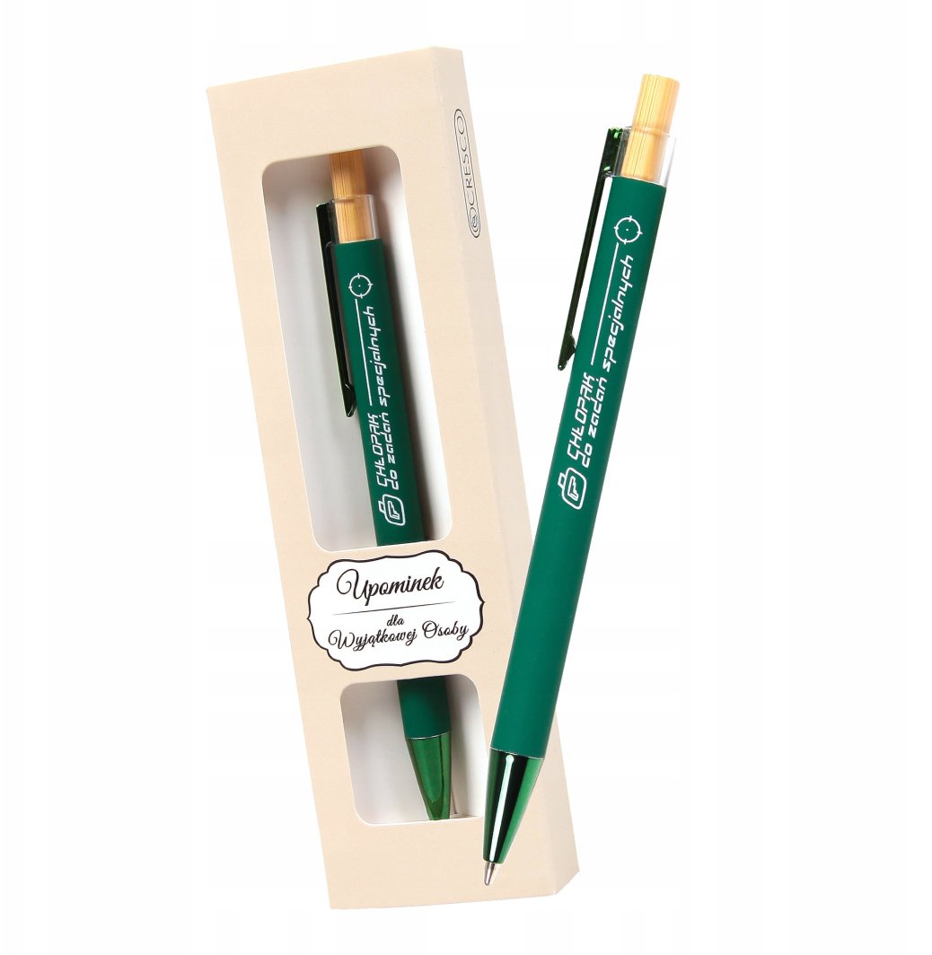 Długopis Cresco z inspirującym napisem "Chłopak do zadań specjalnych" to niezwykły produkt, który łączy w sobie funkcjonalność, elegancję oraz pozytywną energię. To doskonały wybór na Dzień Chłopaka, który z pewnością przypadnie do gustu każdemu mężczyźnie.