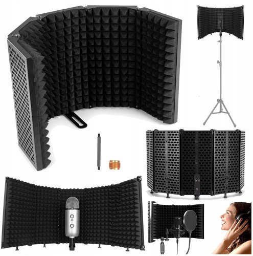 Produkt został wykonany z materiałów najwyższej jakości, takich jak pianka poliuretanowa, ABS oraz żelazo, co zapewnia doskonałe właściwości tłumiące oraz solidność konstrukcji. Grubość paneli wynosząca 4,5 cm skutecznie absorbuje niepożądane odbicia dźwięku, co jest kluczowe dla uzyskania czystego brzmienia. Dzięki zastosowanej technologii, nagrania są wyraźne i profesjonalne, co z pewnością zadowoli każdego użytkownika.