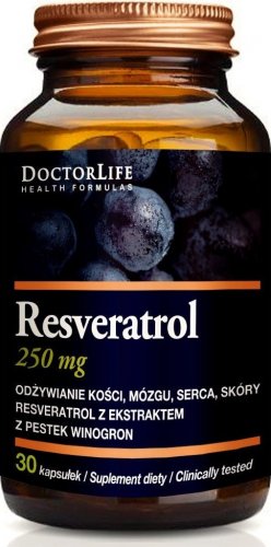 Doctor Life DOCTOR LIFE_Resveratrol resweratrol z ekstraktem z pestek winogron 250mg suplement diety 30 kapsułek