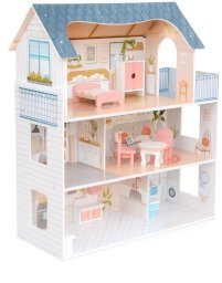 Domek dla lalek drewniany, z balkonem i dachem