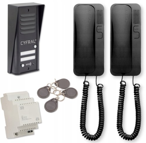 Cyfral Cosmo R2 to system domofonowy przeznaczony dla dwóch rodzin, który umożliwia wygodną komunikację między lokatorami. Wyposażony w czytnik breloków zbliżeniowych RFID, pozwala na łatwe otwieranie drzwi za pomocą breloków, co znacznie podnosi komfort użytkowania. System obsługuje do 160 breloków, w tym dwa breloki MASTER, co ułatwia programowanie i zarządzanie dostępem.