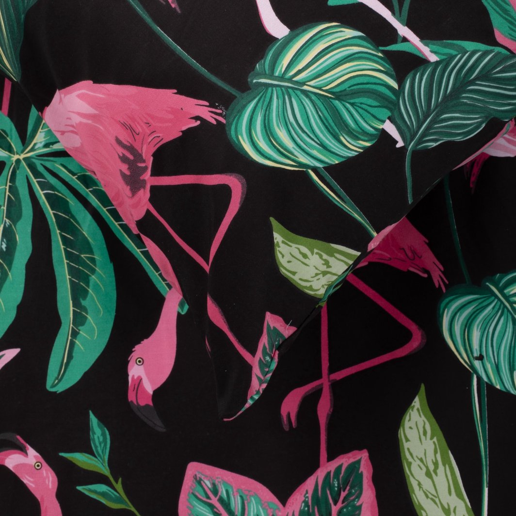 Odkryj elegancję i świeżość w swojej sypialni dzięki kompletowi pościeli Domoletti Flamingo. Ten wyjątkowy zestaw, który zawiera dwie poszewki na poduszki oraz poszwę na kołdrę, wprowadzi do Twojego wnętrza egzotyczny klimat. Modny czarno-różowy wzór z motywem flamingów doskonale harmonizuje z różnorodnymi stylami aranżacji, nadając im niepowtarzalny charakter.