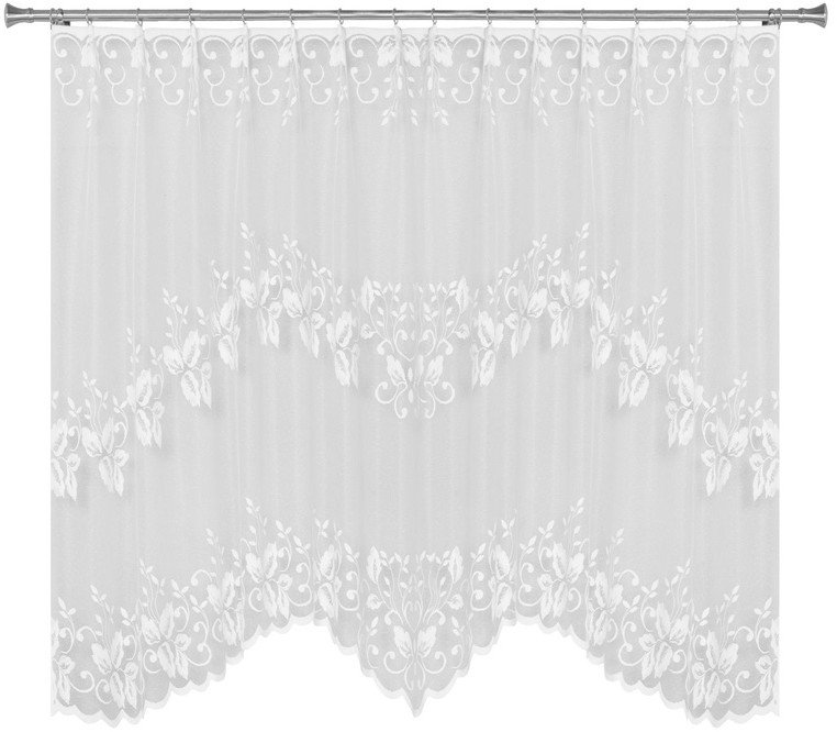 Firany Domoletti Ilona 300x150 White to stylowy element dekoracyjny, który doskonale wpasuje się w różnorodne wnętrza. Jej biały kolor sprawia, że jest niezwykle uniwersalna i łatwo zharmonizuje się z różnymi stylami aranżacyjnymi. Dzięki wymiarom 300 cm szerokości i 150 cm wysokości, firana idealnie nadaje się do większych okien oraz przestronnych pomieszczeń, wprowadzając do nich lekkość i elegancję.