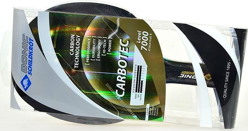 Karbon jest bardzo twardym i lekkim materiałem, co jest powodem jego zastosowania w wielu różnych rodzajach technologii (podróże kosmiczne, przemysł samochodowy itp.). Jest on także wyjątkowym materiałem ze względu na wytrzymałość i odporność na warunki atmosferyczne. Rakietki CarboTec są bardziej odporne na skręcanie, przez co efektywniej przekazują energię piłce i mają większy „sweetspot”. Dzięki specjalnemu procesowi produkcyjnemu główka i rączka rakietki są zrobione z jednego kawałka materiału. Rakietka jest całkowicie pusta w środku (wydrążona) i może mieć indywidualnie dobrany kształt i wyważenie.