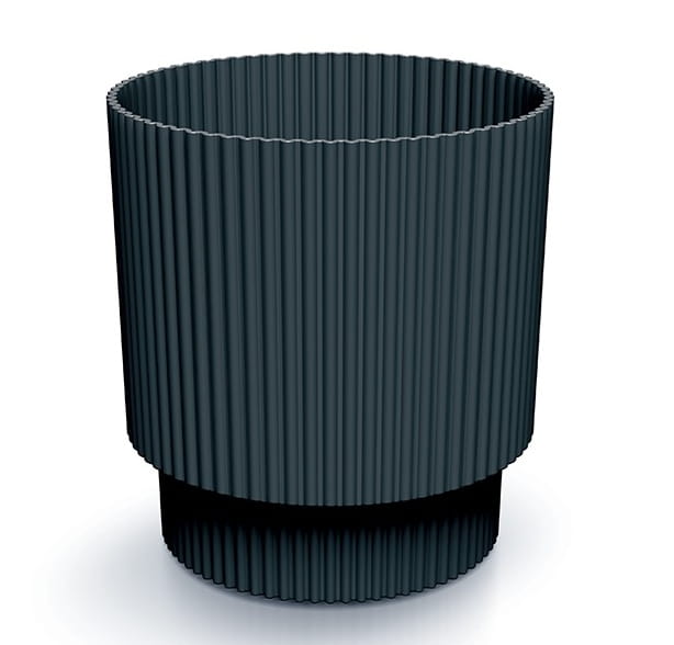 Doniczka antracytowa prążkowana na nóżce plastikowa 13,8x12,8 cm osłonka Milly Round