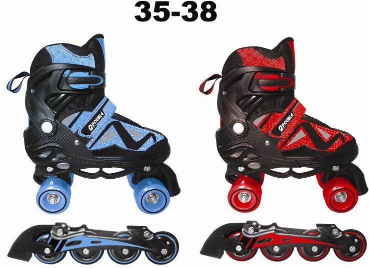 Double 2-i-1 Rulleskøjter, Blå STR. 35-38