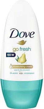 Dove jest to marka produktów kosmetycznych należąca do międzynarodowego koncernu Unilever. Kosmetyki powstały w 1957 roku, kiedy na rynku amerykańskim pojawił się pierwszy produkt Dove - mydło w kostce. Produkty tej marki są wytwarzane w Holandii, USA, Irlandii, Niemczech, Brazylii oraz w Polsce. Pełen profesjonalizm został doceniony- zyskała ona rzeszę fanów. Antyperspirant Go Fresh Anti-Perspirant Pear&Aloe Vera w kulce zawiera specjalnie opracowaną formułę. Kosmetyk nie tylko zapewnia ochronę przed potem i przykrym zapachem, ale również regeneruje podrażnioną po goleniu skórę pod pachami dzięki zawartości 1/4 kremu nawilżającego. Zacznij dzień od orzeźwiającego zapachu gruszki i kojących tonów aloesu. Uczucie pewności i kontroli nad ciałem przez 48 godzin.