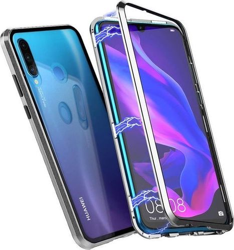 Dr. Fit Etui magnetyczne szklane Dr.Fit dwustronne do Huawei P30 Lite Srebrne uniwersalny