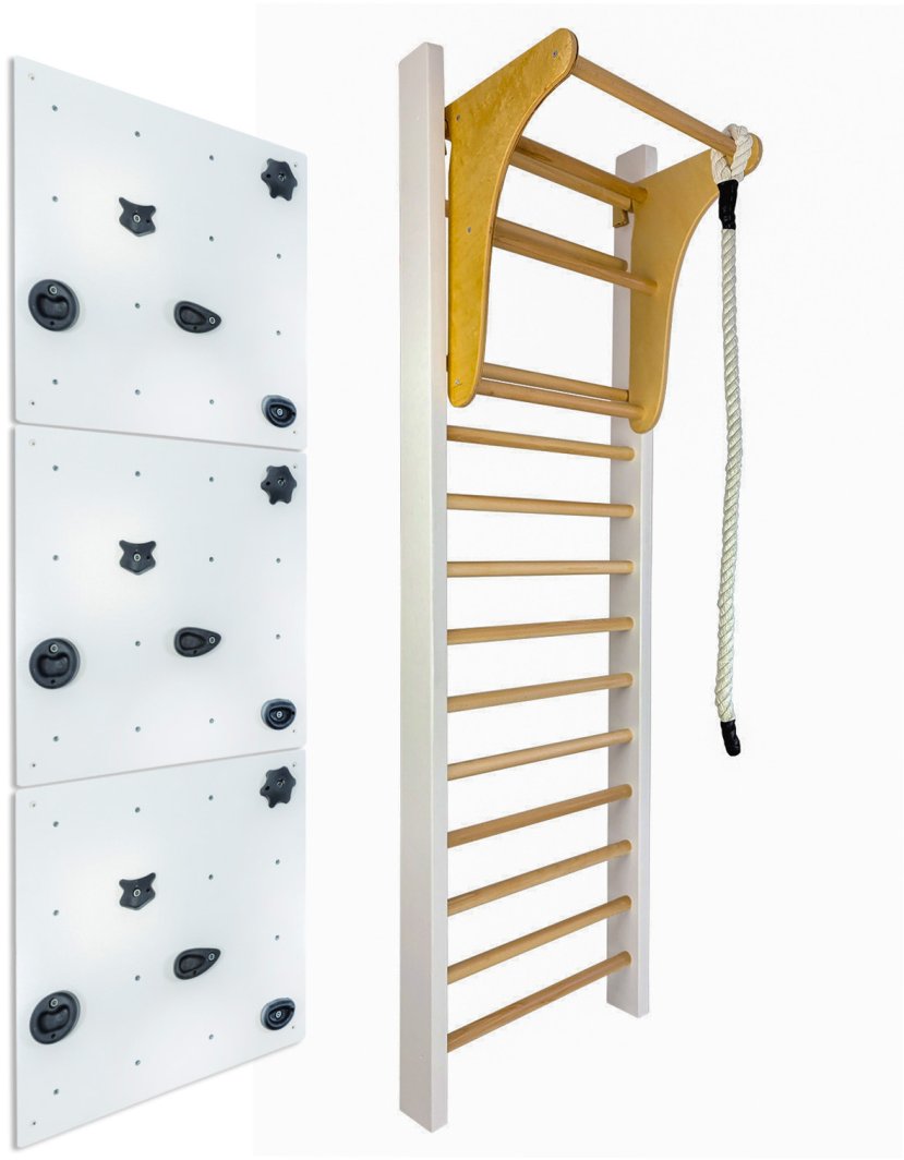 Drabinka gimnastyczna LEON 240x80 biała + drążek + ścianka wspinaczkowa