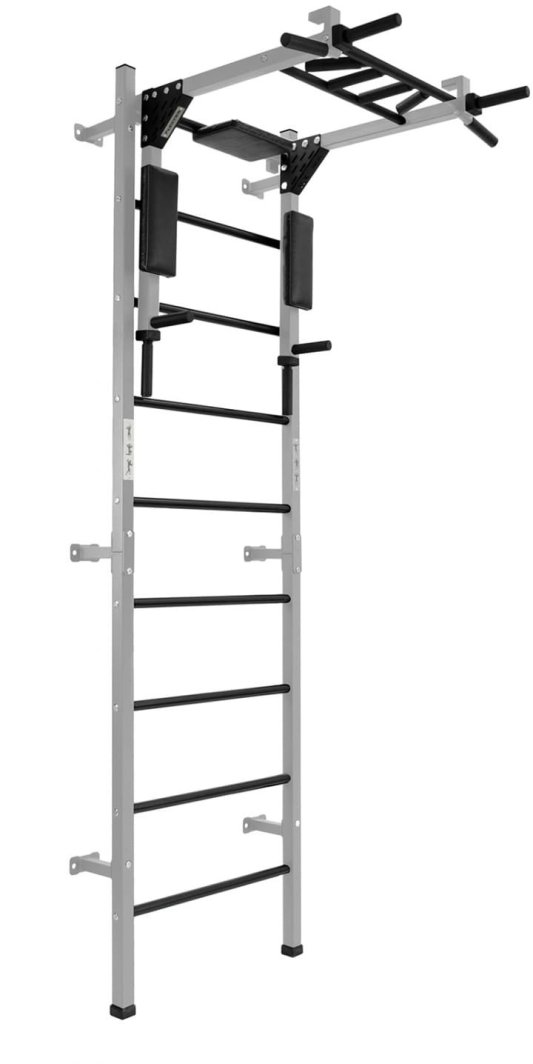 Drabinka gimnastyczna Profi szary + drążek i poręcze do dipów 2w1 | 250 kg