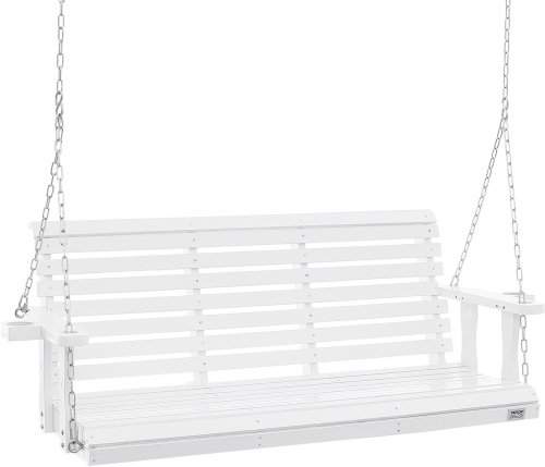 Drewniana huśtawka ogrodowa wisząca na taras werandę biała 170 cm