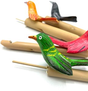 Drewniany Gwizdek Bambusowy – Ptaki. Wymiary 13 x 5 x 1 cm. Piękne, ręcznie robione drewniane gwizdki kaczki. Ich dźwięki przypominają odgłosy wydawane przez ptaki. Każdy gwizdek jest ręcznie malowany – mają ładną gamę żywych kolorów. Ręczny charakter tych gwizdków dodaje niepowtarzalnego charakteru i gwarantuje, że każdy egzemplarz jest jedyny w swoim rodzaju. Drewniane gwizdki mogą służyć zarówno jako instrumenty funkcjonalne, jak i przedmioty dekoracyjne. Można je wyeksponować na półce lub wykorzystać jako zabawny dodatek do kolekcji instrumentów muzycznych lub wystroju z motywem kaczek. Niektórzy entuzjaści zbierają również drewniane gwizdki na kaczki w ramach swojego hobby lub jako pamiątkę z wydarzeń lub miejsc związanych z kaczkami.