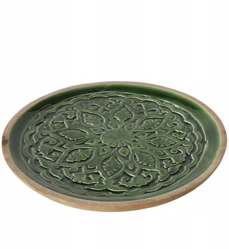 Drewniany talerz GRELO o średnicy 30 cm to znakomite połączenie stylu i użyteczności. Wykonany z wysokiej jakości mangoholza, ten talerz nie tylko przyciąga wzrok, ale również spełnia wszelkie wymagania dotyczące codziennego użytkowania w kuchni. Jego ciemnozielony kolor oraz żłobiony wzór nadają mu unikalny charakter, który z pewnością zwróci uwagę Twoich gości.