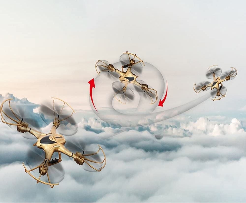 Model posiada dodatkową funkcję wykonywania w powietrzu obrotów o 360 stopni wokół własnej osi. Wystarczy tylko wcisnąć specjalny przycisk na kontrolerze i obserwować niewiarygodne akrobacje Twojego drona.