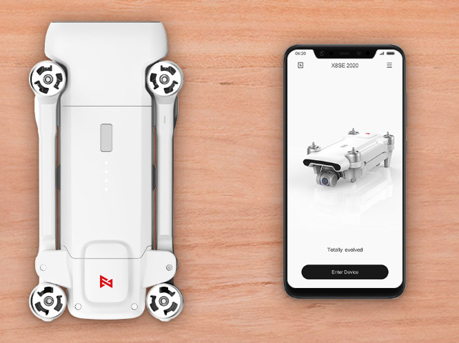 Konstrukcja drona FIMI X8 SE jest zupełnie inna niż reszty dronów na rynku. Elegancki styl i staranne wykonanie odpowiadają jego nieprzeciętnej specyfikacji. Jest wyposażony w cztery składane mechanicznie ramiona, których długość i kształt zapewnia lekki start z ziemi i doskonałą stabilność lotu. Skrzydła w znacznym stopniu przyczyniają się do podkreślenia designu całej konstrukcji.