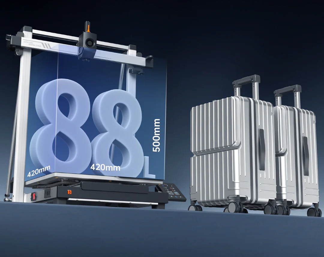 Obszar druku o wymiarach 420 x 420 x 500 mm (pojemność 88 litrów) pozwala na tworzenie masywnych obiektów w całości. Wyeliminowanie konieczności cięcia modeli na mniejsze fragmenty i późniejszego ich sklejania oszczędza czas oraz ułatwia zachowanie spójności konstrukcyjnej. Funkcja ta doskonale sprawdza się podczas przygotowywania makiet architektonicznych, dużych elementów cosplayu czy funkcjonalnych prototypów przemysłowych.