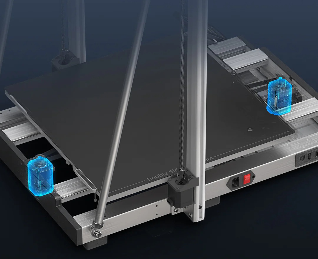 Maksymalna prędkość druku sięgająca 600 mm/s oraz przyspieszenie rzędu 10 000 mm/s² drastycznie zmniejszają czas oczekiwania na gotowy model. Zaawansowany system automatycznego poziomowania LeviQ 3.0 w połączeniu z mechanizmem Anti-Step Lost dba o to, by wysokie tempo pracy nie wpływało negatywnie na dokładność nakładania warstw. Płyta grzewcza osiąga 90°C w zaledwie 125 sekund, co przekłada się na błyskawiczny start całego procesu.