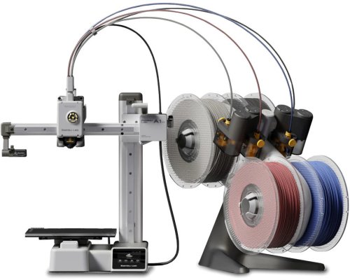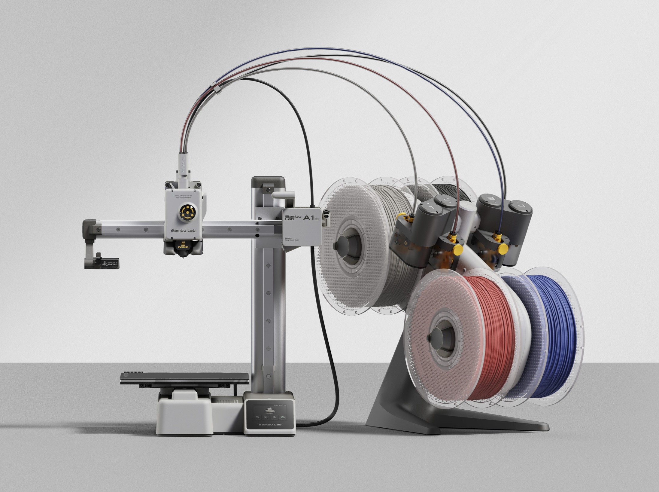 Moduł AMS lite to kluczowy element wersji Combo. Umożliwia on jednoczesne podłączenie czterech szpul filamentu, zapewniając automatyczne ładowanie i rozładowywanie materiału. System ten wykorzystuje technologię RFID do automatycznego rozpoznawania filamentów Bambu Lab, co pozwala na natychmiastowe zastosowanie optymalnych ustawień druku. Otwarta konstrukcja modułu ułatwia wymianę szpul i monitorowanie ilości pozostałego materiału.