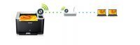 Konfiguracja Wi-Fi za pomocą jednego przycisku umożliwia szybkie i łatwe podłączenie drukarki do sieci. Naciśnij przycisk WPS (konfiguracja chroniona Wi-Fi) w routerze, następnie naciśnij przycisk WPS na drukarce i gotowe. Standardowo należałoby poświęcić sporo czasu na zdefiniowanie nazwy sieci bezprzewodowej i ręczne wpisane klucza bezpieczeństwa lub hasła we wszystkich urządzeniach bezprzewodowych. Bardzo wygodna funkcja konfiguracji Wi-Fi za pomocą jednego przycisku automatycznie konfiguruje i zabezpiecza sieć bezprzewodową.