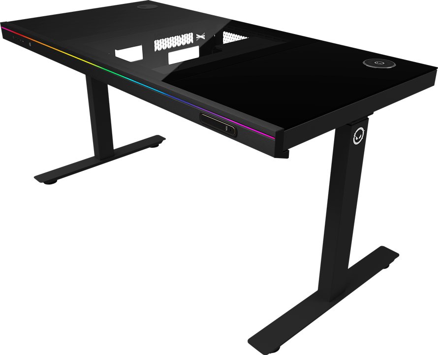 Biurko zostało wyposażone w praktyczną wbudowaną obudowę na komputer, która obsługuje płyty główne od Mini-ITX do pełnowymiarowych ATX oraz karty graficzne o długości do 410 mm. Dodatkowo, wbudowana bezprzewodowa ładowarka o mocy 15W umożliwia wygodne ładowanie urządzeń mobilnych, eliminując potrzebę stosowania dodatkowych kabli.