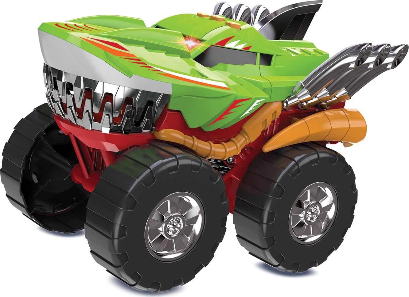 Odjazdowy rekin to prawdziwy pogromca szosy! To stylowe autko posiada niepowtarzalny wygląd i wiele niespodzianek pochowanych w swym wnętrzu: świeci, jeździ, a nawet wydaje realistyczne odgłosy! Za aktywowanie poszczególnych funkcji odpowiedzialne są przyciski umieszczone na dachu pojazdu. Zabawka przeznaczona dla dzieci od 3 roku życia.