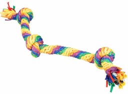 Duvo+ Zabawka dla Psa Sznur Tęczowy 3 Węzły 63cm to zabawka dla psów z bawełnianą linką i gumowym gryzakiem z wypustkami do gryzienia.