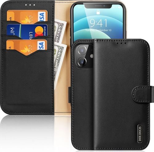 Dux Ducis Dux Ducis Hivo skórzane etui z klapką pokrowiec ze skóry naturalnej portfel na karty i dokumenty iPhone 12 mini czarny