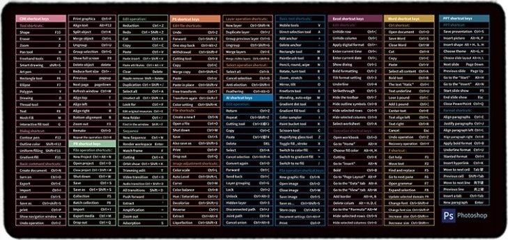 Duża Mata Podkładka Na Biurko Skróty Klawiszowe