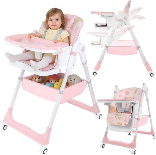 DUŻE SKŁADANE WIELOFUNKCYJNE KRZESEŁKO DO KARMIENIA 5W1 PAPUŚ RÓŻOWE