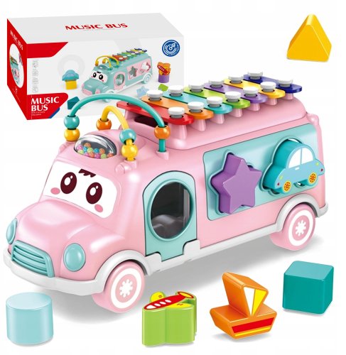 Duży Autobus Muzyczny Bus Dla Dzieci Sorter Klocków Cymbałki Grzechotka 5W1