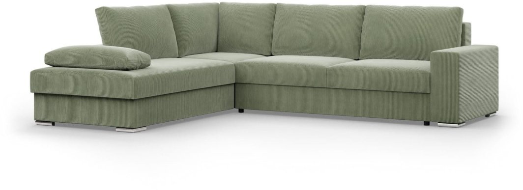 Duży narożnik Momento to doskonałe połączenie elegancji i funkcjonalności, które idealnie wkomponuje się w każde wnętrze. Jego lewa orientacja oraz nowoczesny kształt litery L sprawiają, że staje się centralnym punktem aranżacji, oferując jednocześnie wygodę i styl. Wykonany z miękkiego sztruksu w oliwkowym odcieniu, narożnik nie tylko przyciąga wzrok, ale także zapewnia najwyższy komfort użytkowania.