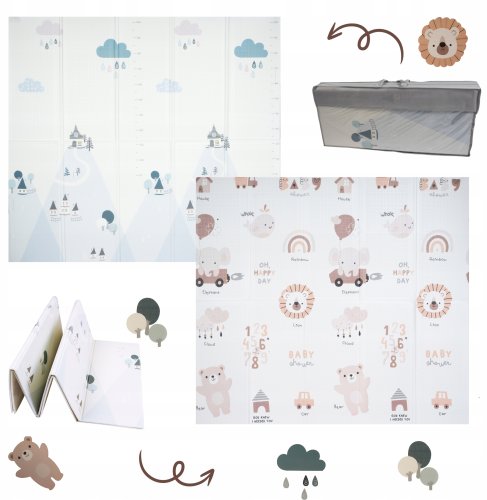 Dwustronna składana kolorowa edukacyjna piankowa mata dziecięca 180x200 cm - misie i słoniki