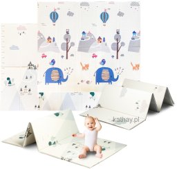 Dwustronna składana kolorowa edukacyjna piankowa mata dziecięca XXL 180x200 cm - słonik